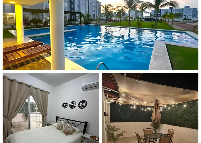 El Apartamento Depa Planta Baja con Alberca y Terraza Privada en Zona Diamante Acapulco tiene terraza y está situado a una distancia de 3 km de la Playa La Bonfil. Disfrutar de acceso a la piscina asegura una estancia más relajante.